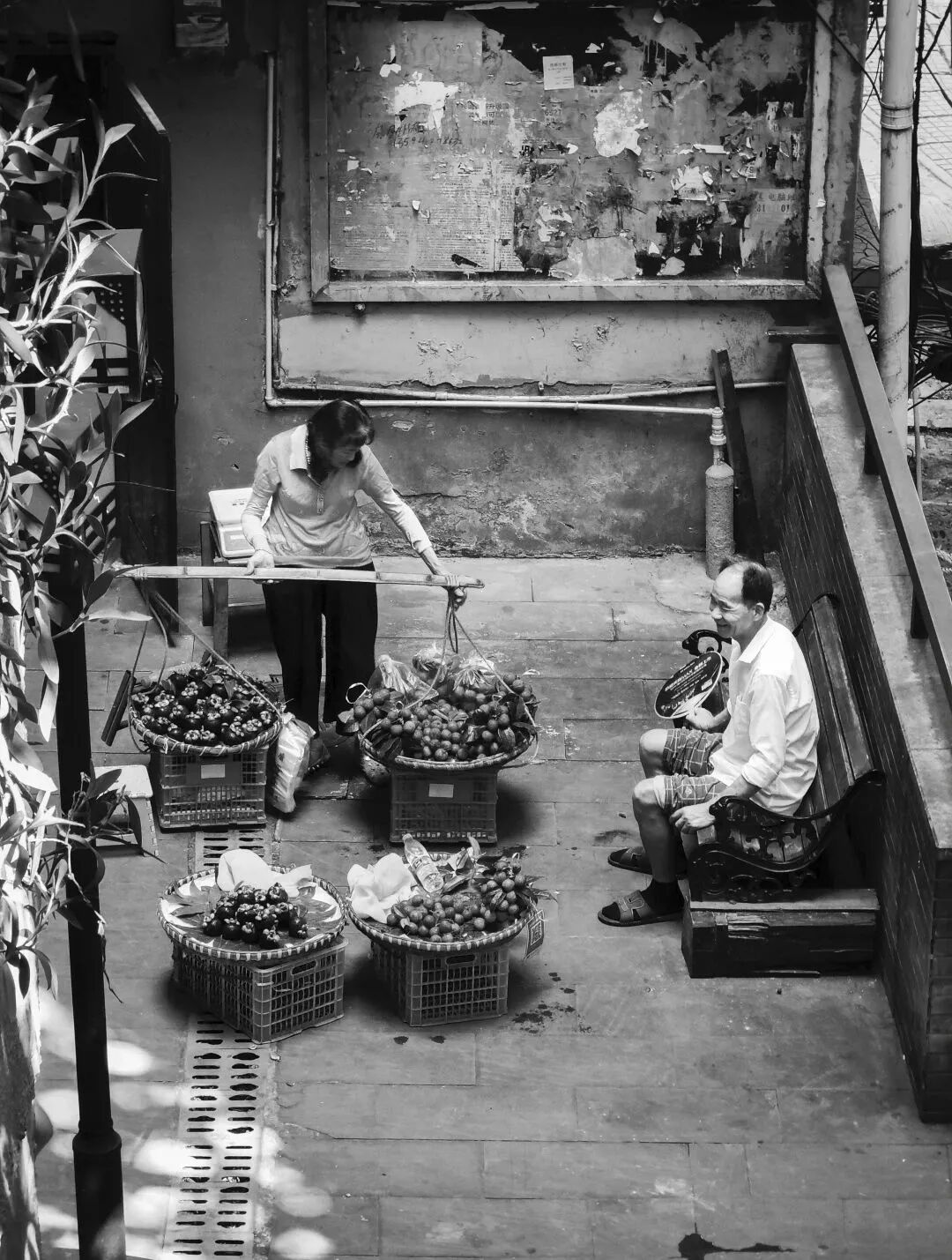 翁凯仕很少出远门。他想拍母亲家楼下的水果摊主很久了。母亲住在离他家不太远的另外一个区,他常过去,从七楼的阳台上望,刚好能看见那个摆摊卖水果的男人的背影。到了晚上,水果摊上会点两盏灯,灯光照在水果上,很漂亮。翁凯仕常站在阳台上拍他,换了很多个角度,但就是拍不好。