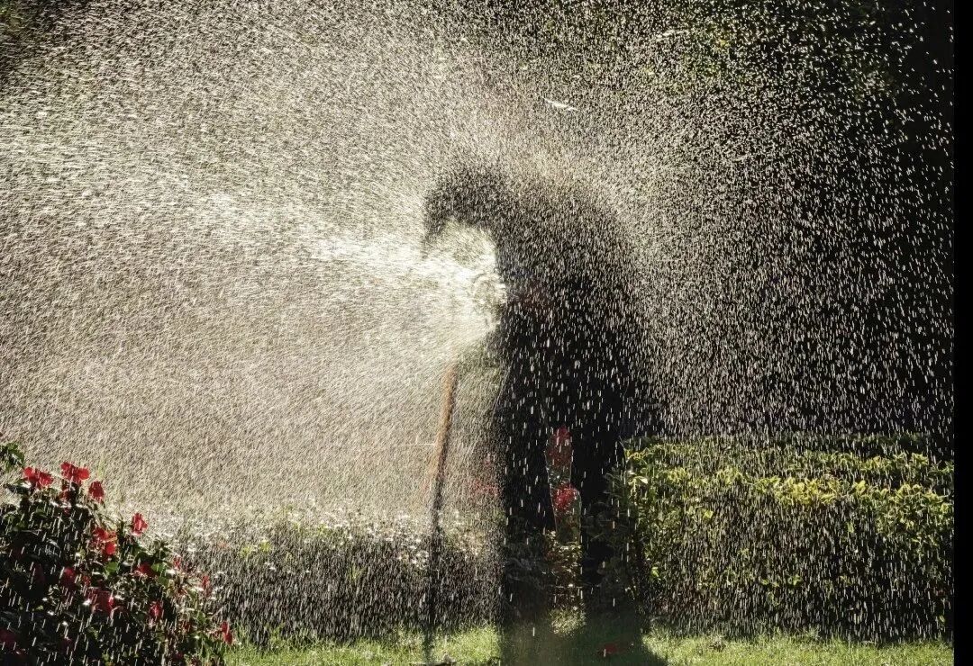 初冬,上海街头,小学教师邱岳路过,他掏出手机,将镜头对准了单位里一个正在浇水的绿化工人。按下小米手机快门的时候,弯腰浇水的主人公浑然不觉,他的双手牢牢握住水管,以使流水准确地洒向这片极平整的绿地和初冬盛开的鲜花。从水管喷涌出来的水宛然变成了一道水幕。在水与光的游戏里,略显佝偻的影子,成了一个正在施法的魔法师。