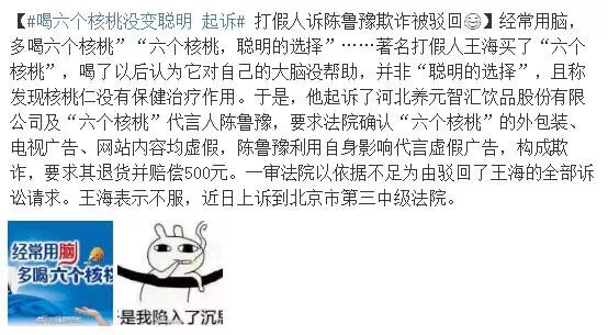 于是,他起诉了厂家及“六个核桃”代言人陈鲁豫,