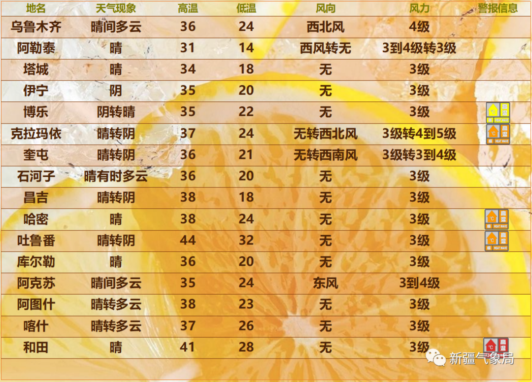 乌鲁木齐两地发布高温橙色预警