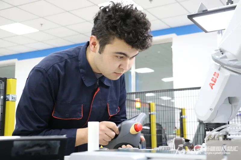 3月24日,新疆交通职业技术学院机电工程学院的学生在实训室内上课。通讯员齐杰摄