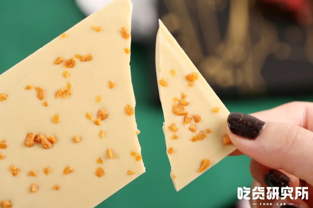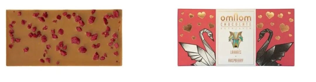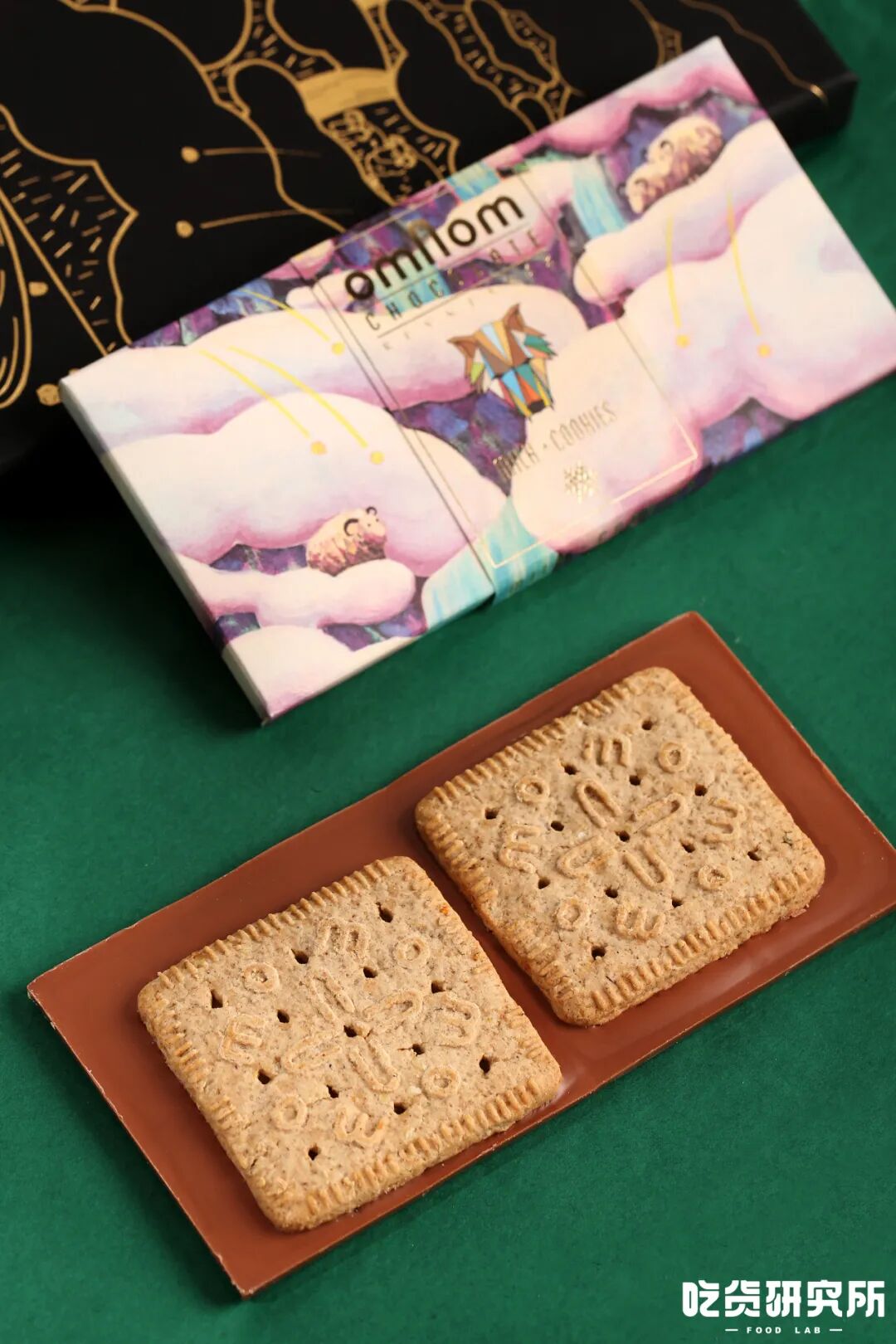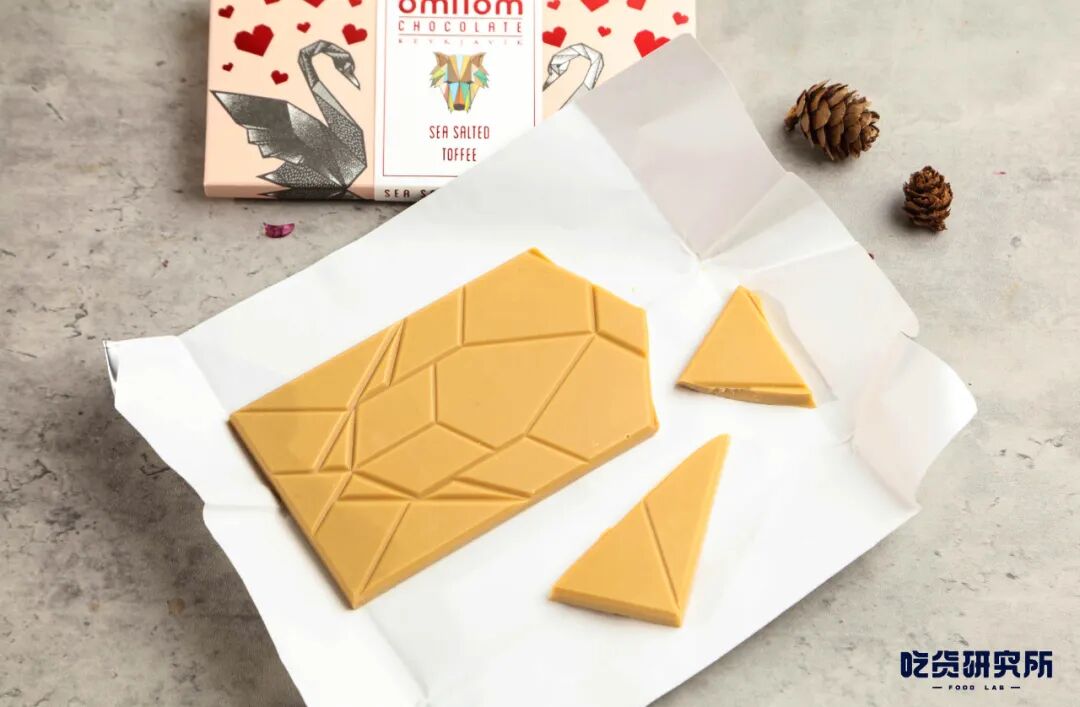 用料更是扎实,满满的大块覆盆子干和可可碎感觉都要掉下来了,看起来是不是还有一种改良版的黑森林的感觉~它的基底依然选用了让omNom非常自信的马达加斯加可可,58%的添加量加更是恰到好处,混合木香、多层次明亮果酸、松脆果干及可可碎果香,每一口都被惊艳到!吃过这款牛奶曲奇,太让人念念不忘了,丝滑醇香的牛奶,搭配燕麦曲奇,即刻解锁双倍美味 Buff!让人很难不爱!牛奶巧克力和口感松脆酥香的姜饼曲奇搭配,掰下一块含进嘴里,就像掉进面包房里,入口惊艳!说到曲奇,就要夸一下他家的曲奇饼,太用心了!用的是雷克雅未克人气烘焙店Bread & Co专门为omNom烘烤的饼干,杏仁和燕麦的添加,让曲奇的口感更加绵软酥松。45% 马达加斯加牛奶巧克力基底,覆盖在两整块散发淡淡姜味的燕麦的曲奇上,简直是天作之合。入口杏仁、红糖的甜香,姜与香料的独特气息强势漾开,融合醇厚的奶香,不是那种俗气的“傻白甜”,大写的满足。将淡淡的橙皮与肉桂融入白巧中,再撒上咸香的黄油焦糖碎粒,风味层层递进,口感层次直接三连。掰一块放到嘴里,融化的瞬间,像是口腔里绽放了一颗浓缩的牛奶炸弹,奶香四溢,绵密顺滑。而麦芽、肉桂和橙皮丁的添加,更还原了当地橙汁麦芽饮料的味道,变成可以嚼着吃的特色土著饮料,口感这么有层次的白巧,算是独一份了吧!吃了这三款,所长忍不住感叹,口味这么独特的增味巧克力,可惜的一点就是平时买不到,这次我们也只搞到了300份,手慢可就没有了。02