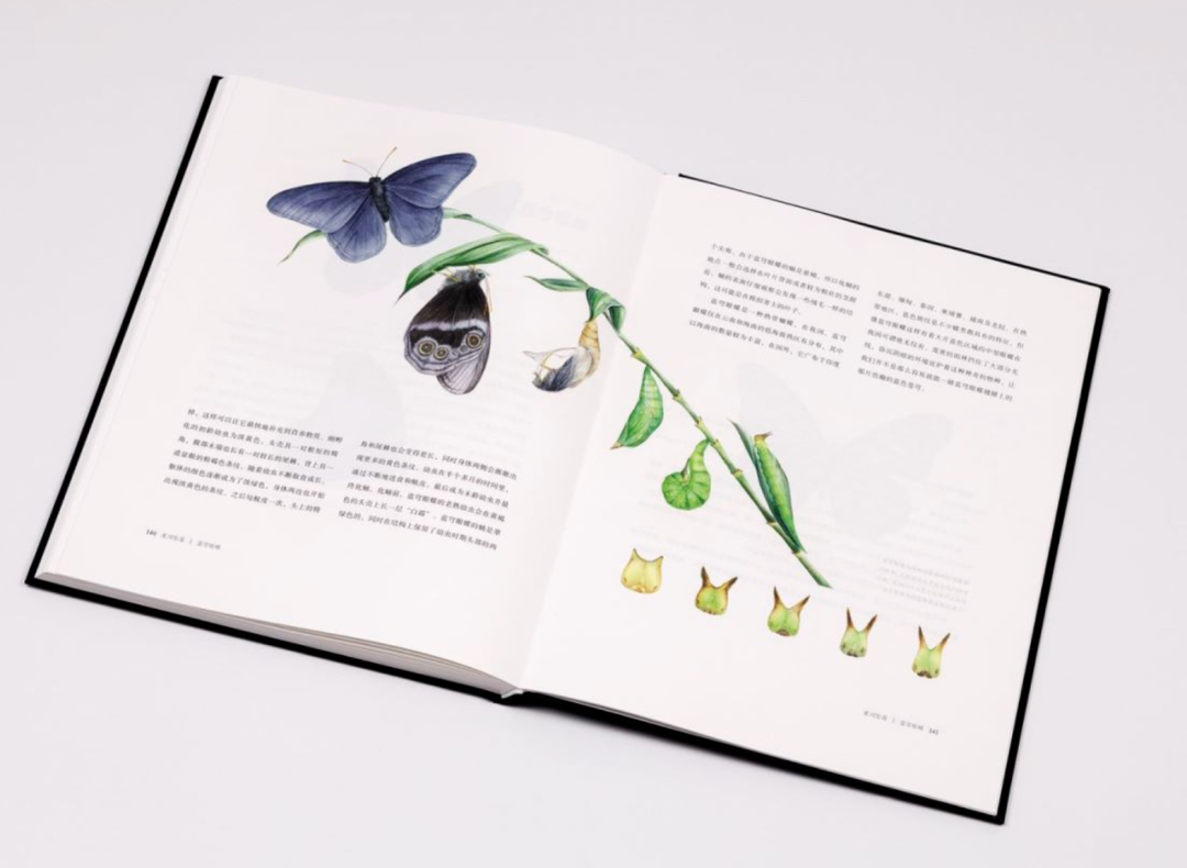 全特种纸印刷,尽可能还原原画,只求更好展现蝴蝶丰富的细节,蝴蝶绒毛的质感、贝母光泽的翅膀都跃然纸上。