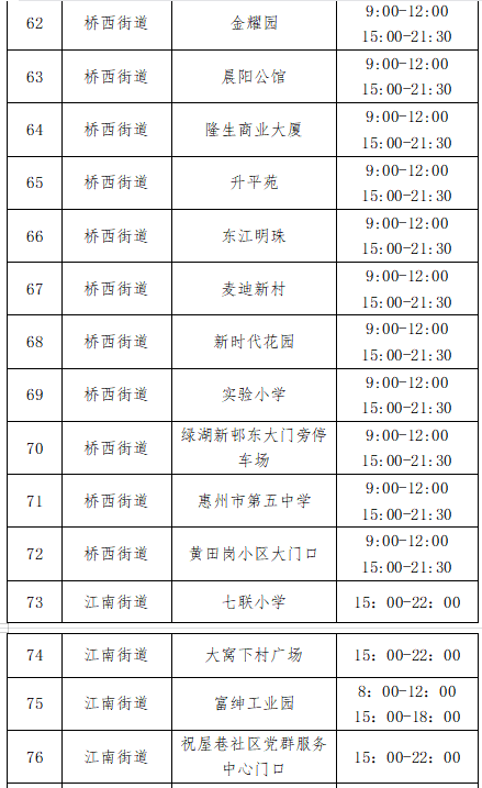 为继续加强我区疫情防控工作,切实保障人民群众健康安全,根据目前疫情防控形势,惠城区定于8月18日-19日在各镇街开展第二轮全员新冠肺炎核酸筛查工作。现将采样点有关事项通告如下: