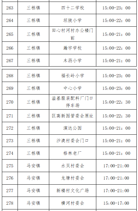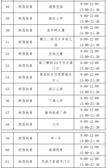 (二)除江北街道以外的各街道/镇:设置多个核酸采样点(详见附表),采样时间为2022年8月19日8点至23点,请各镇街居民有序前往采样点采样。