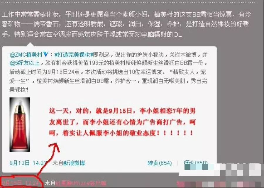 第二天董楠就去世了。而李斯羽还再微博发着广告。