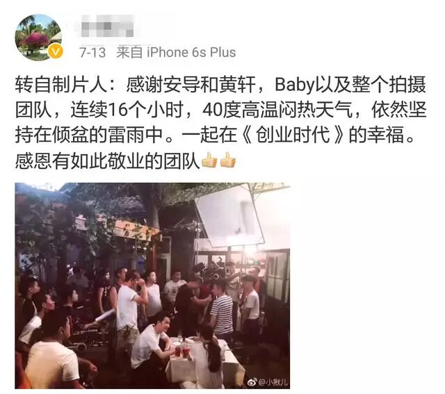 上一部剧的工作人员也曝光了包括她在内的演员,在高温40℃的天气里、雨中连续拍摄16小时。