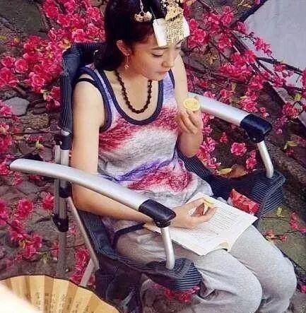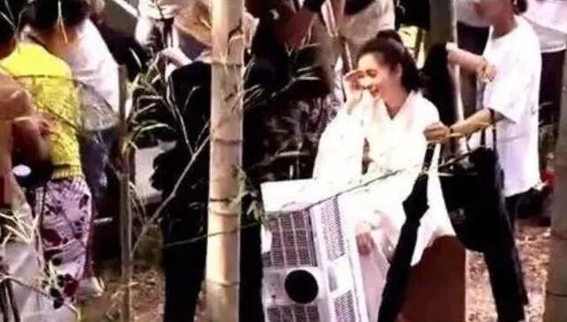 这都不是最夸张,外景又是竹子,又是土的,导演硬是现场发电给她装空调,而且只对着她一个人吹。