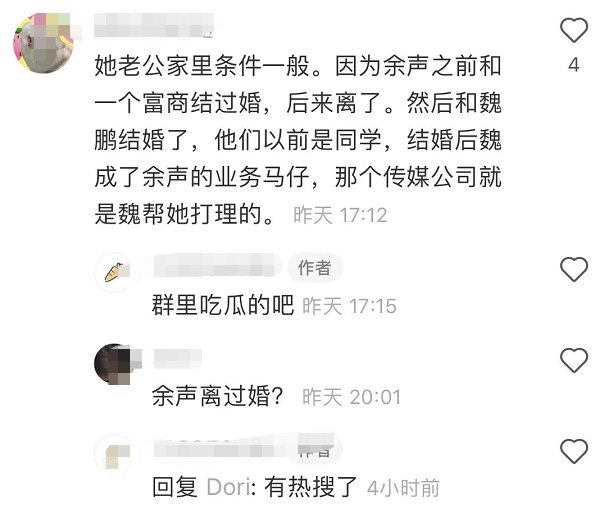 啊,这,我好像个断网的傻子,所以余声和魏鹏是二婚,可是余声这么优秀二婚就这么了!!确实不止一个人说,余声之前和一个富商结过婚,岁数还比余声大很多岁。现在的老公魏鹏家里条件一般般,结婚后成了余声的业务马仔,帮余打理传媒公司。阿美觉得2022年了,就算余声真的离过婚也不是什么过错,更别混淆余声就算离过婚那也不是魏鹏犯罪的理由!如果因为老公这破事再影响了自己好不容易打拼下的事业,那可真是惨兮兮了,有句mmp不知当讲不当讲。事到如此,阿美就不纠结这个人渣到底是不是富豪,余声到底是嫁进豪门还是精准扶贫,既然结婚了人家两个开心就好。家有娇妻却依然在外不干人事的,娱乐圈可以说是屡见不鲜,至于后面余声是选择离婚还是原谅,其实作为局外人,我们很难指责或者左右人家的想法。只是希望这三个人渣,在里面也能齐心协力,把踩缝纫机踩到天荒地老,谢谢了。(部分配图来源网络,如有侵权邮件联系mmjz2015@qq.com)
