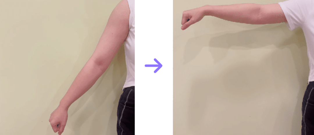 右手、小臂和大臂:握拳、小臂向大臂弯曲、手臂向外伸直并绷紧