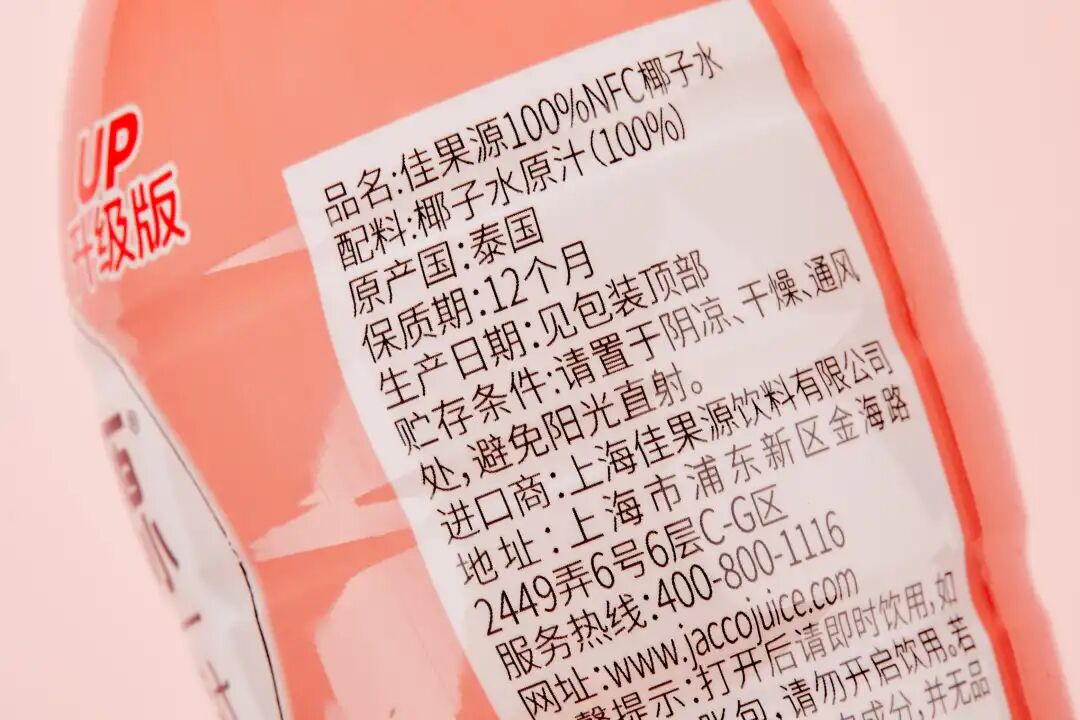 新鲜原果出汁,配料只有纯纯的椰子水,无其他添加,老人小孩都能放心喝!