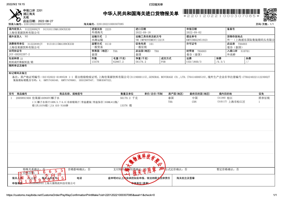 商品名称:佳果源椰子水