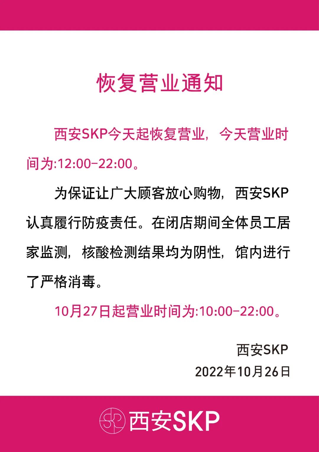 自10月24日起,西安中大国际高新店恢复正常营业。