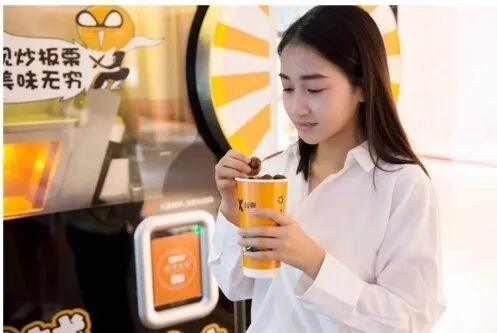 具体来看,X 板栗用机器模拟人工炒制板栗的全过程,每台机器存储 40 公斤生板栗,每次把 3-5 公斤板栗(机器根据板栗消耗情况预测需炒多少)、相应比例的调料(蜂蜜、麦芽糖、天然果汁)、石英砂放入炒锅,循环翻炒,然后栗砂分离,把板栗移入保温箱中保存两小时,石英砂则筛回料箱。用户扫码购买时板栗被装入纸杯送出,价格不高于市面上糖炒栗子的价格(约 25-30 元一斤)。
