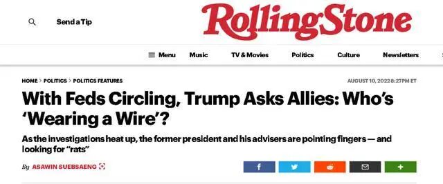 不过,美国《滚石》杂志称,特朗普及其身边的人确实在追查到底是谁告发了他。其中,特朗普本人怀疑可能是美国现任总统拜登在其家里安装了“窃听器”。而他身边的一些人似乎在利用此事打击讨厌的同事,称对方可能是告发了特朗普的人,并希望特朗普去进行调查。