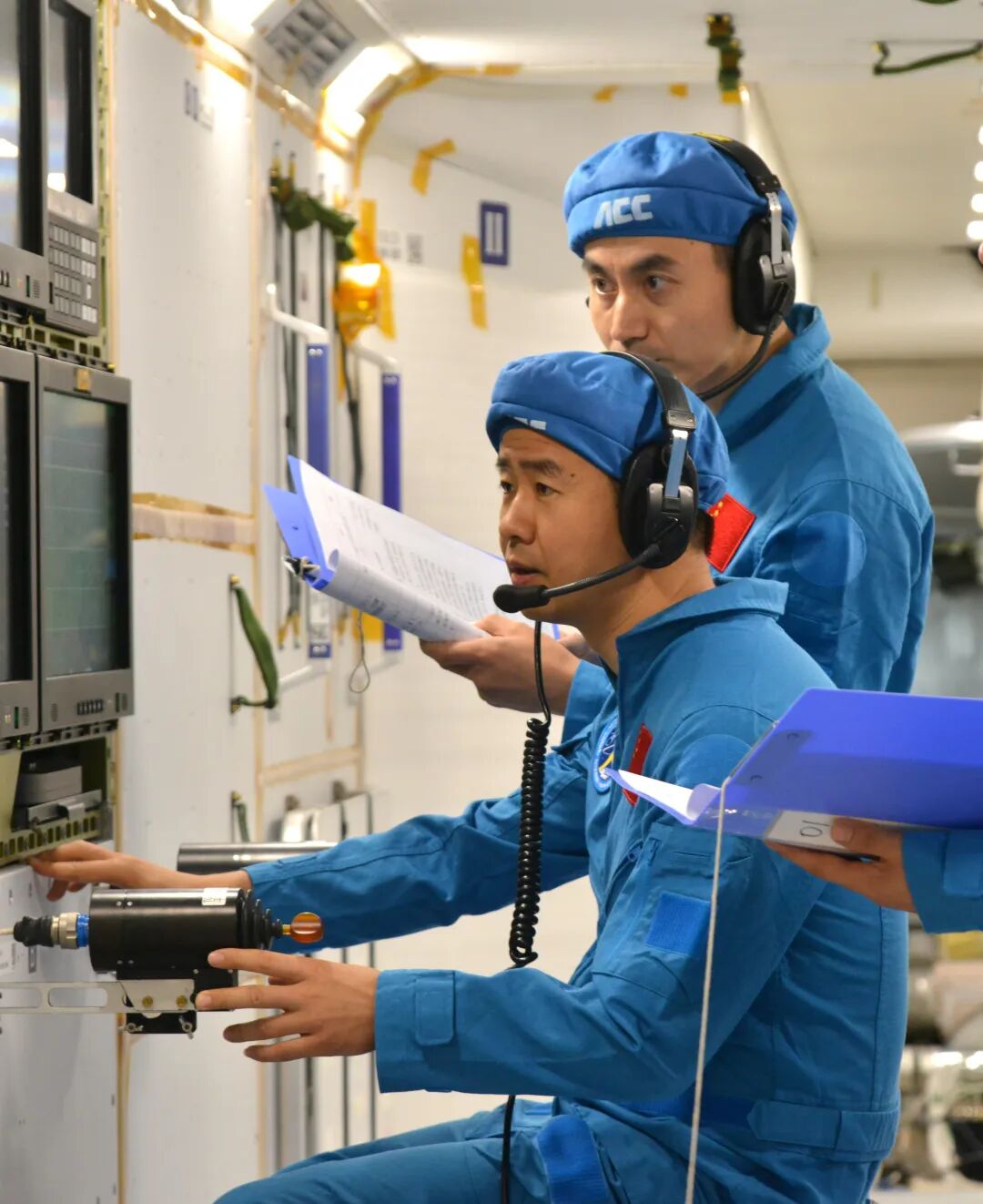 在训练期间,陈冬根据任务要求和3人特点进行了分工。他是指令长,主要负责抓总和出舱活动;刘洋工作细致,负责物资管理和机械臂操作;蔡旭哲理论功底深厚,操作熟练,主要负责环控设备运行与维修。经过两年半的磨合,乘组间越发默契。