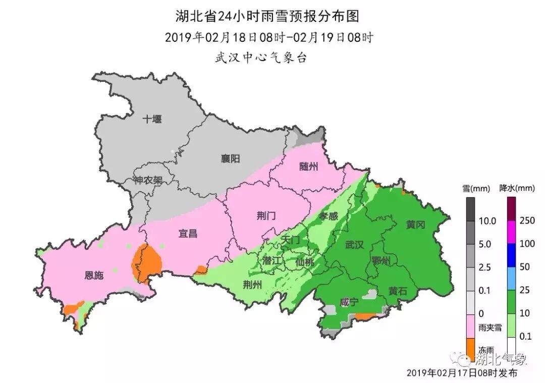 据武汉中心气象台预计,受高空槽和地面冷空气共同影响,今起省内将迎新一轮雨雪过程,其中雨势最强时段为今晚到明天白天,西部和北部有小到中雪、局部大雪,偏北风4-5级。