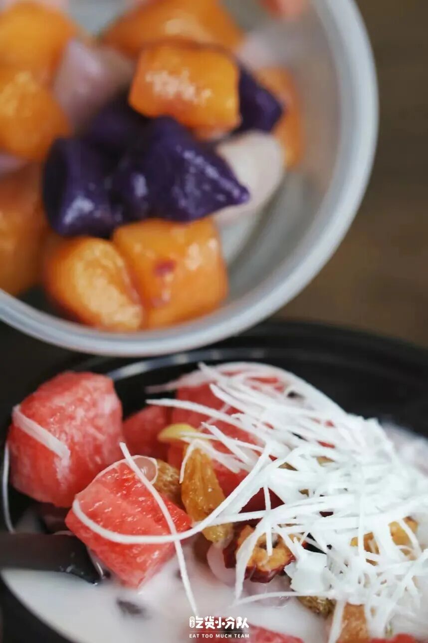 海南当地用来解暑的甜品清补凉,北京终于也有了。我点的是外卖,椰奶可以选糖度,里面的料也特别多:椰丝、水果、干果、仙草、凉粉...清爽不腻口。