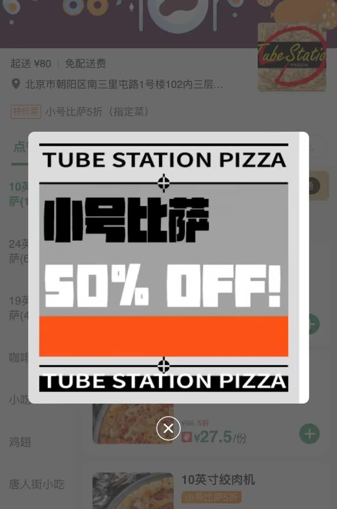 10英寸小号披萨5折