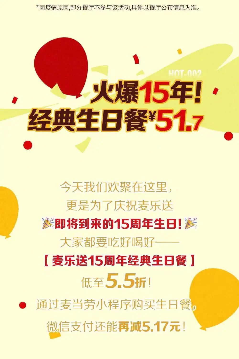 麦乐送经典生日餐5.5折;