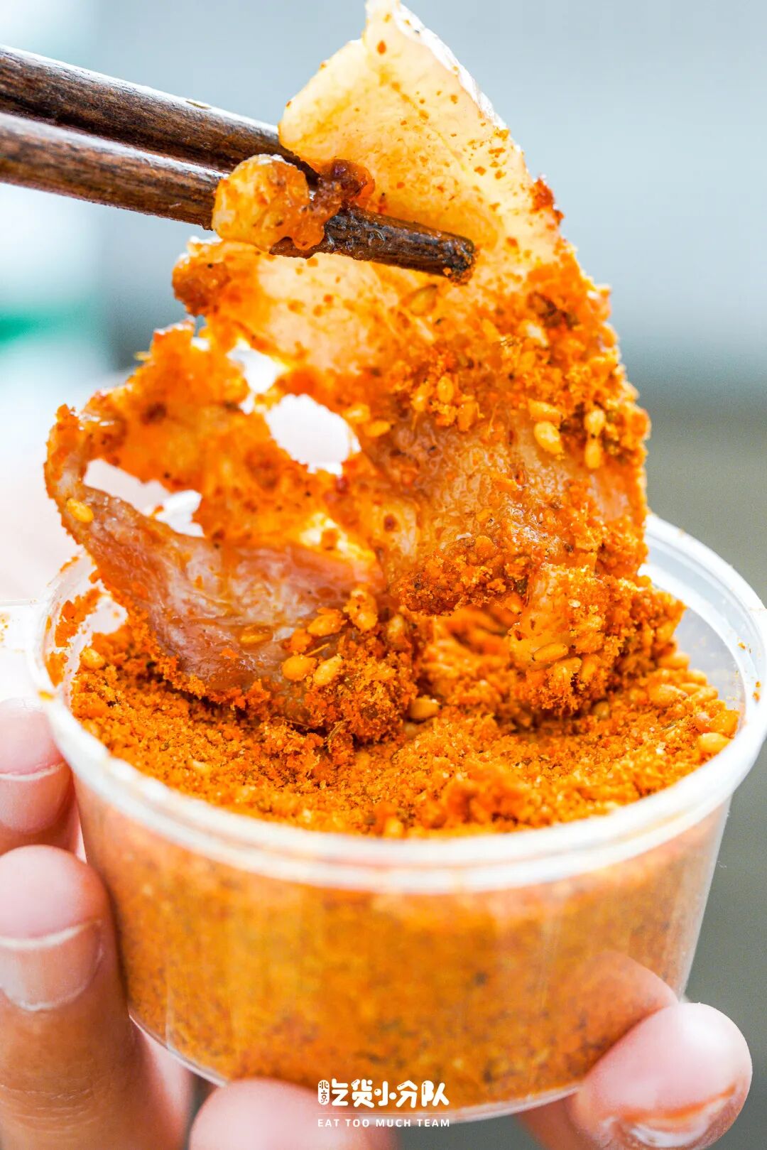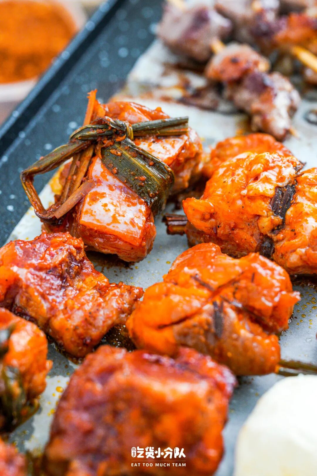 烤好的大肉片直接拽进干料里打个滚,越吃越香。