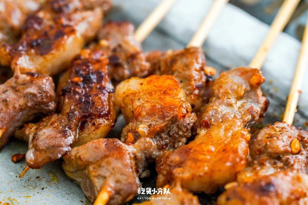 【手工羊肉小串】给的分量很足,每串的大小又刚刚好,可以在烤盘的一侧排排站方便拿取翻烤。