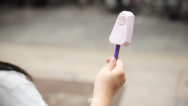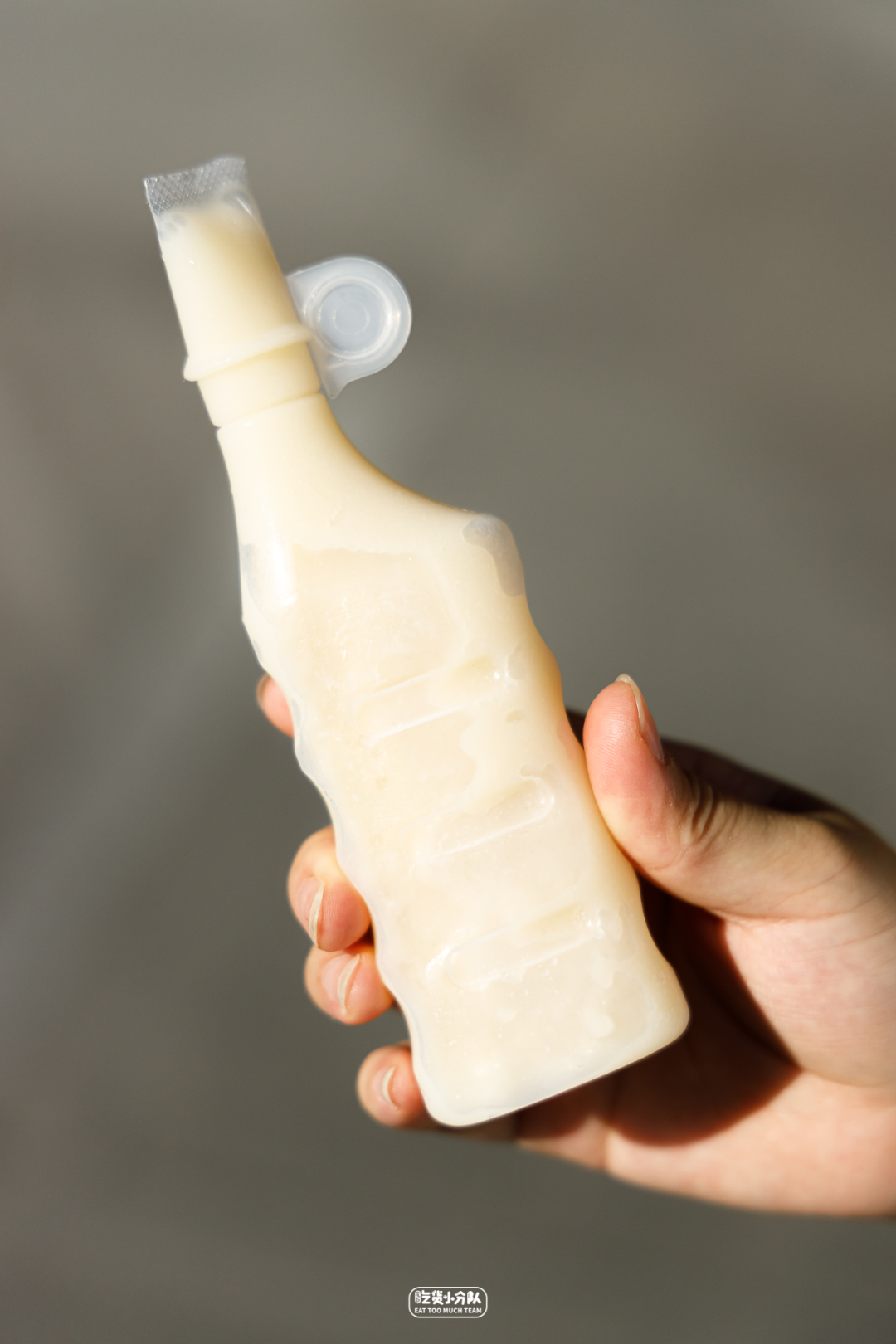 这个造型有点朴素了,味道就像是加了糖在冰冻的养乐多。有一说一,若是融化了一点,这个开口真的会打不开,形状吃起来也有点不方便。