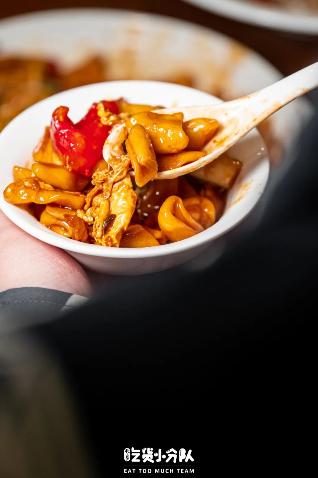 面食我们这次尝了4-5种,最推荐这个【炒猫耳朵】,20元/份。猫耳朵小面团一个个劲道的哟,跟咱们这个牙,产生着一些个你推我搡的互动。大家吃过新疆菜馆的那种丁丁炒面吗?这猫耳朵的嚼劲儿比丁丁炒面还足个5倍左右,简直太有口感了!