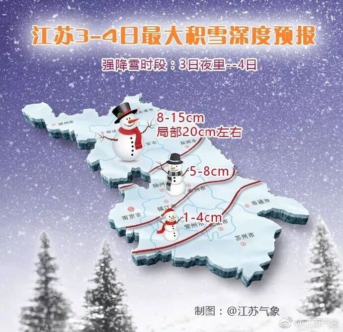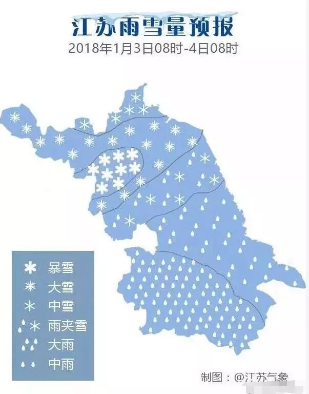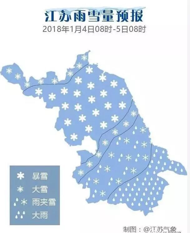 3日8时到4日8时,中雪、大雪、暴雪基本覆盖了江苏的整个北部地区,雨夹雪的区域覆盖了扬州的宝应县,而此时的扬州其他区域将会在下中雨;