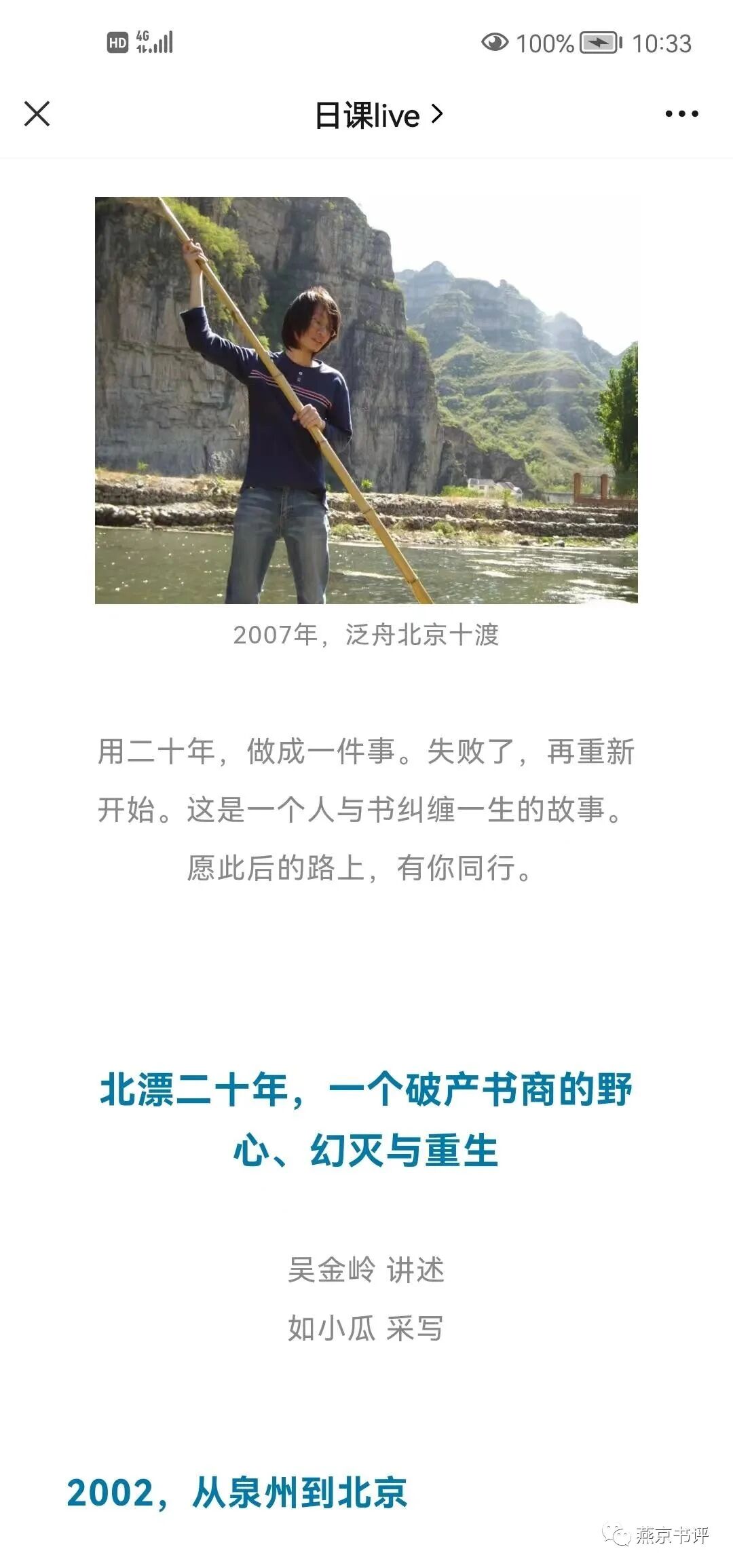 2022年7月,在北京日课书房的房租即将到期,我也无力继续承担在北京的生活和工作成本时,我终于下定决心,关掉书房,离开北京。在我决定离开北京之前,我姐姐发现我经济状况不好,还给我资助了几千块钱,说如果累了,就回来,一家人在一起,没有过不去的坎。甚少表露心里的真实情绪的我,第一次埋头痛哭了一场。回想北漂二十年来,我每年回家的次数最多不过两三次,和父母兄弟姐妹聚少离多,家里都靠哥哥姐姐照应,我女儿这几年在老家市区上学,我也没能好好陪伴她。对家人,我一直心有愧疚。近日,一篇题为《北漂二十年,一个破产书商的野心、幻灭与重生》的网文在民营出版圈飙红,讲述者吴金岭2002年入行,出过《国学讲义》(章太炎著)、《中国人的修养》(蔡元培著)等,知道他的同行实在太多了。吴金岭在《北漂二十年,一个破产书商的野心、幻灭与重生》中,讲述了他20年充满理想、却最终失败的一段生命历程。