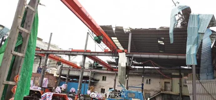 主要是树枝折断、厂房工棚顶部受损