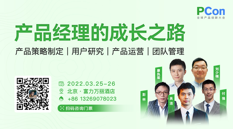 PCon 全球产品创新大会将于 2022 年 3 月 25-26 日 落地北京,9 大产品专题,50+ 来自 Google、小米、字节跳动、芒果 TV、阿里巴巴、Soul、小罐茶、爱奇艺、钉钉等企业的产品专家,齐聚一堂,分享各自在产品创新、产品运营、团队成长等方面实战经验,是产品经理不容错过的学习之旅。