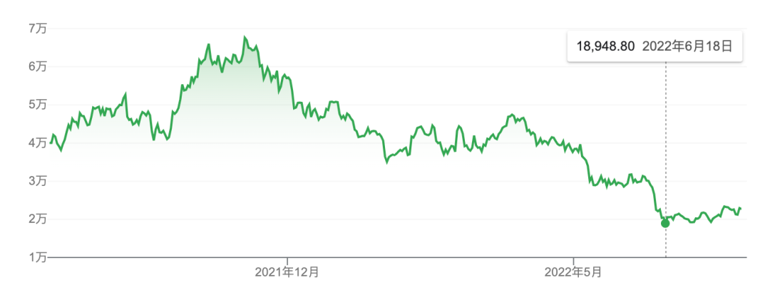 今年6月份,比特币一度跌破1.8万美元/枚。