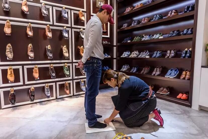 店里除了像一般手工鞋店那样手绘尺寸,还在国外找来了更专业的量脚器,只需要量一次就ok了。