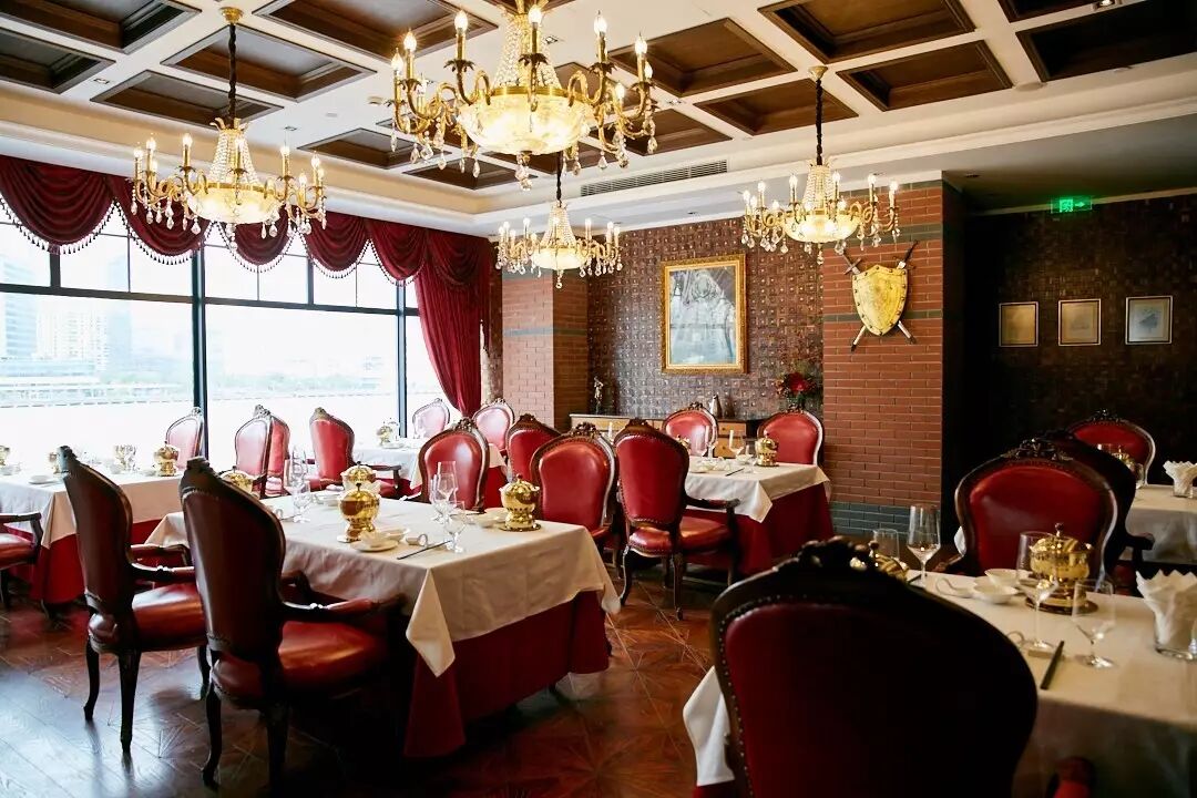 餐厅中共有三个包厢,步入其中仿佛穿越到了英国贵族们的私密宴会。一灯一饰,一桌一椅都带着浓浓的英伦风情。通透的落地窗带来良好的视野与采光。向窗外望去仍然可以感受到浦江两岸的完美景致。老仓库中的这份精致考究,着实令人流连忘返。