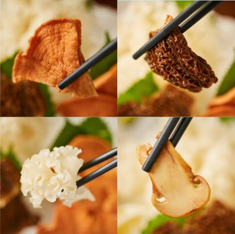 “配角一号”是产自云南的野生菌类拼盘。包括了松茸、绣球菌、羊肚菌和榆耳共四种菌类。四种都是非常稀少珍贵的菌类。尤其是松茸和绣球菌,目前为止还不可以人工养殖,都是专程从云南坐飞机来到上海,供食客享受。当然了,野生菌的美味程度与珍惜程度可是成正比的,养生而味美不再话下。