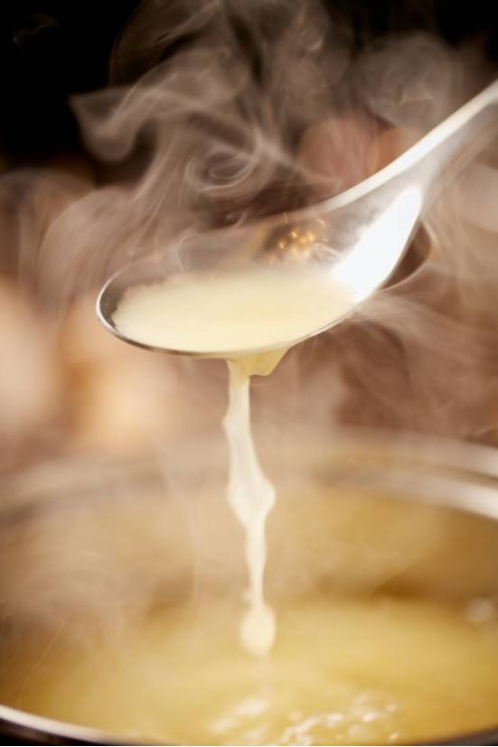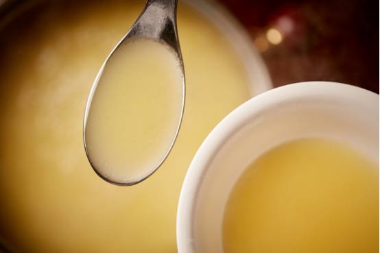 严格控制火候,大火翻滚,文火细煨,如此悉心熬煮10小时将原料自身的鲜美滋味全部溶解于汤汁中。