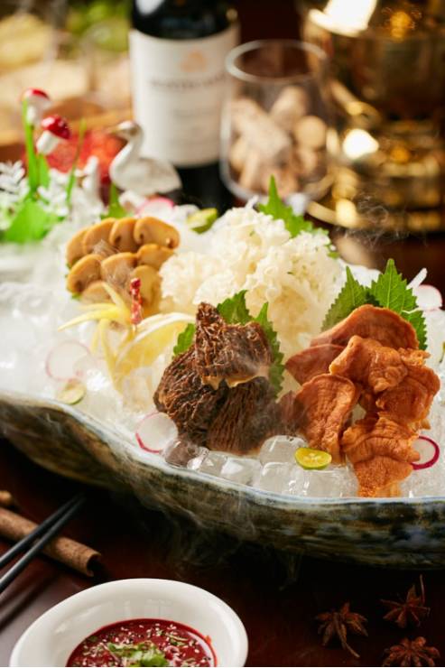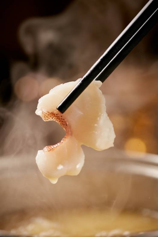 吃过清蒸东星斑、东星斑炖汤,但用一直被老饕们追捧的鲜嫩滋味来涮火锅,还是头一遭。通体红色的一品星斑改刀成1cm的厚片,在浓郁汤水中烫涮十几秒便可品到最完美的口感。