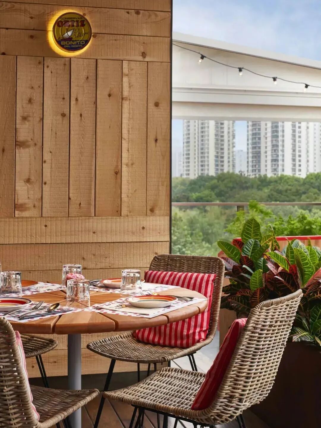 位于无限极荟购物中心3楼的TOMATITO,被称为“性感的tapas 酒吧”,店内满满的80年代西班牙元素,并融入了现代艺术,多彩且时髦,户外还有一片宽敞露台,让浓烈的南美风情更添一丝浪漫。