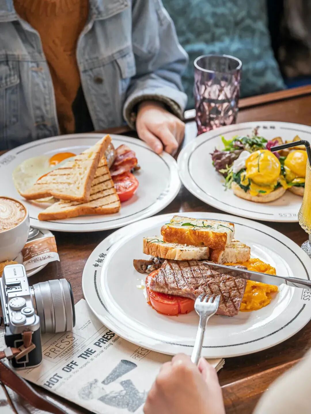 还有经典的香煎三文鱼、蛋饼、美式全餐、酸奶碗等多种选择,你甚至能在brunch的时间就吃上甜点。人气的茉莉酒酿千层、新出的乌龙草莓千层和芋泥鲜奶小方……趁它们下午卖光前早点来尝尝吧!