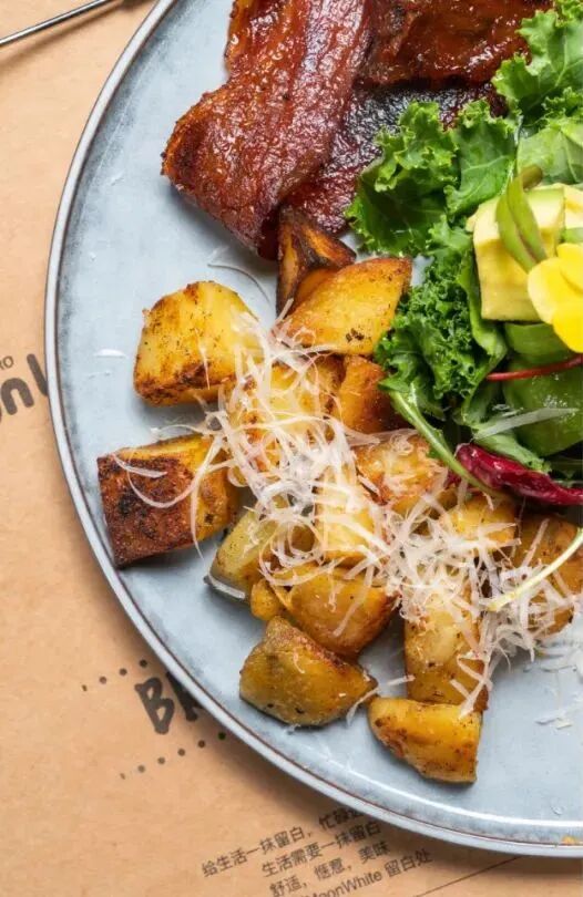 其中要数这份澳洲侧腹牛排蔬菜碗尤为吸睛。柔嫩度适中的大块牛排肉与蔬菜完美搭配,没有过度烹饪和过多调味,能尝到原汁原味的鲜美。
