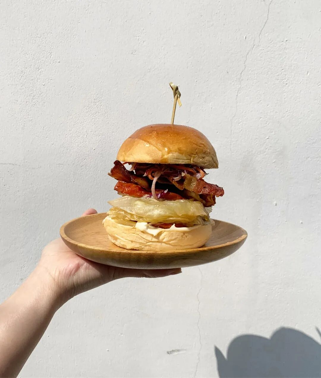如果同行的人多,还可以再点一个烧烤类菜品,比如这份一看就肉量十足的黑米牛柳堡。虽然用来做汉堡的黑米面包走的是低卡路线,但里面满满的芝士和牛柳可是一点没在热量上“小气”。不过既然都周末了,就也别考虑这么多,放开来好好吃一顿吧!