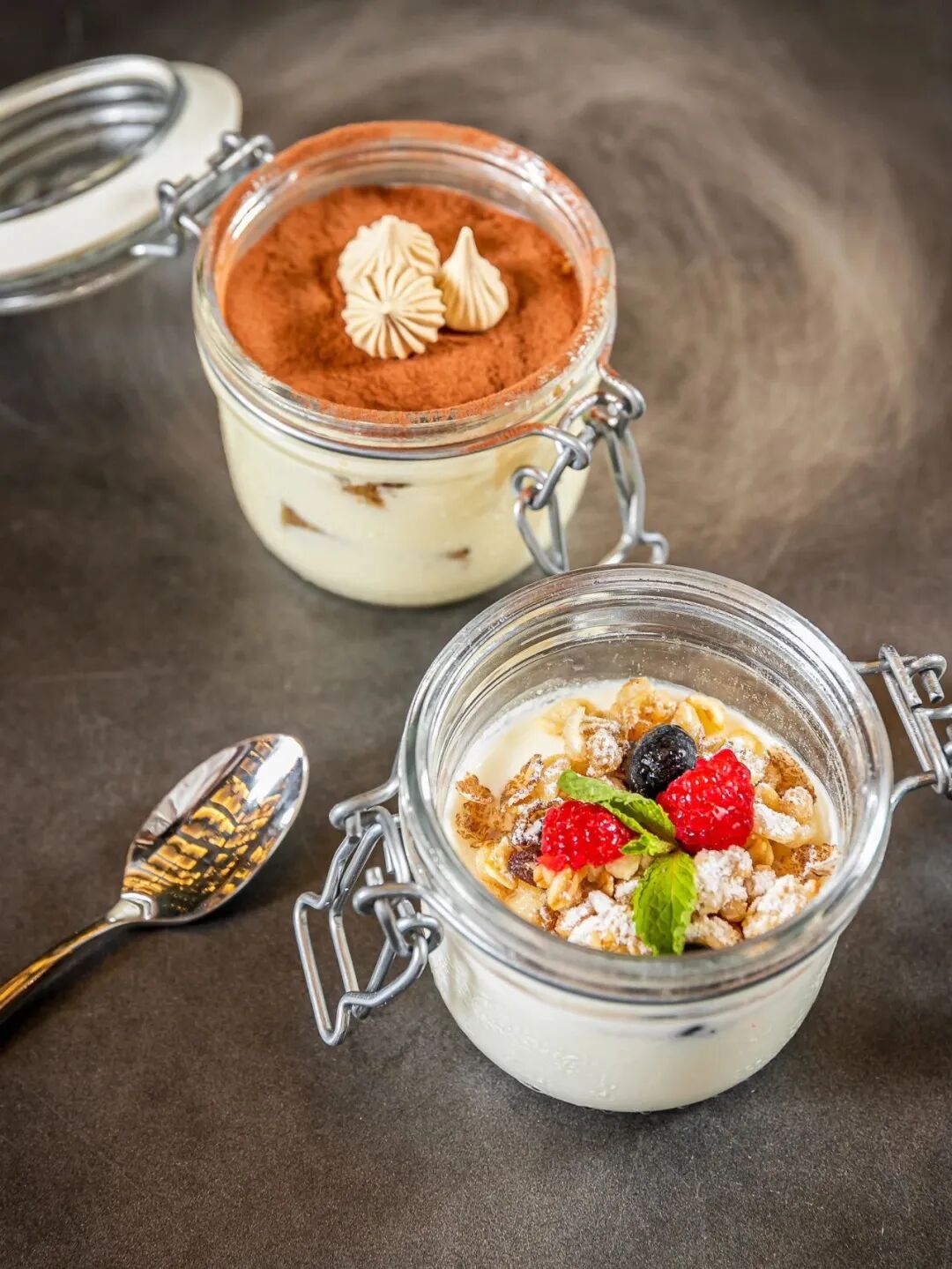 还可以另外点上一份意大利经典甜品,奶香浓郁且带着微苦可可和咖啡香气的提拉米苏,或是清爽滑嫩的椰奶奶冻,用来给一餐收尾正正好。罐装的包装小巧可爱又方便携带,外带当做下午茶点心也是不错的选择。