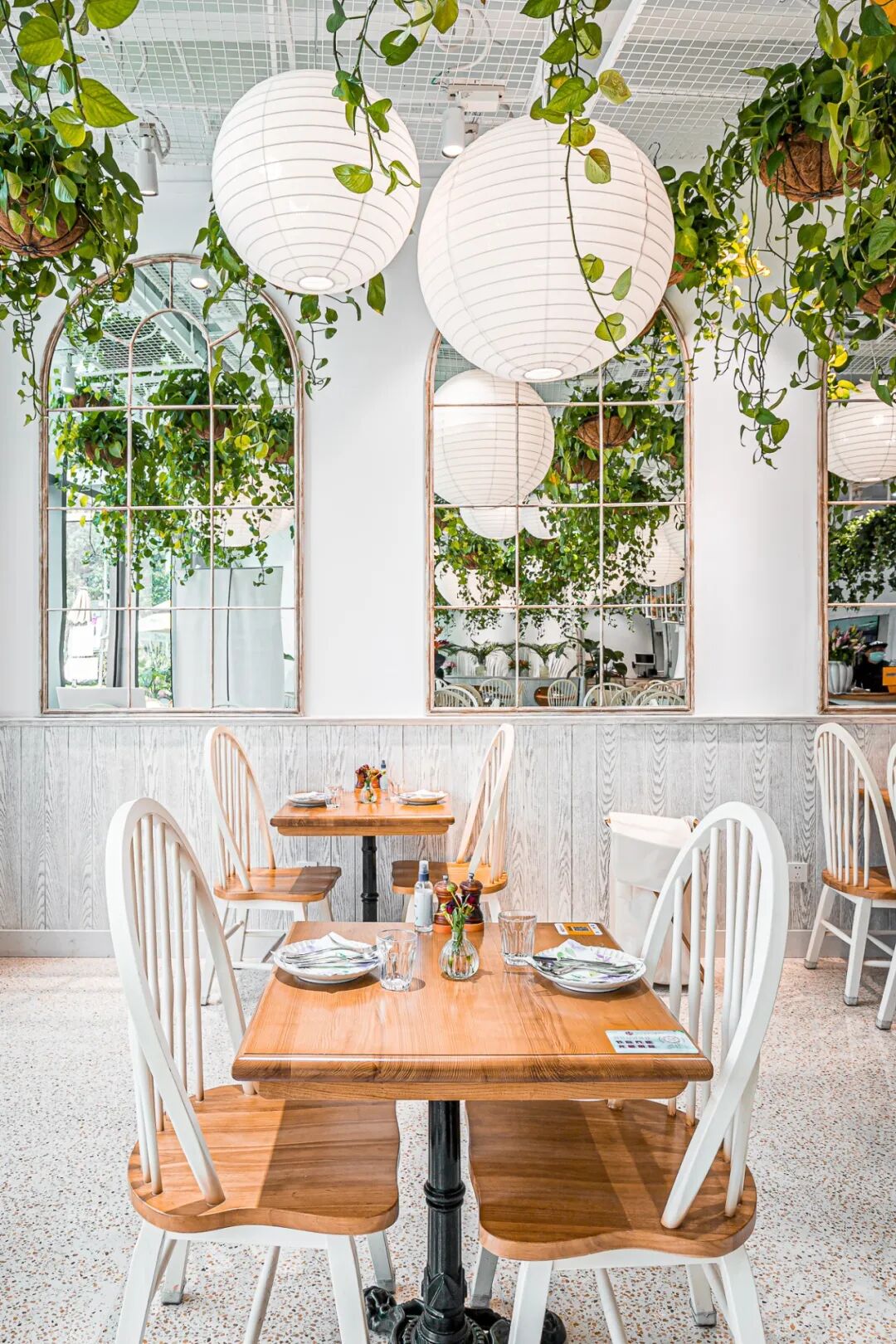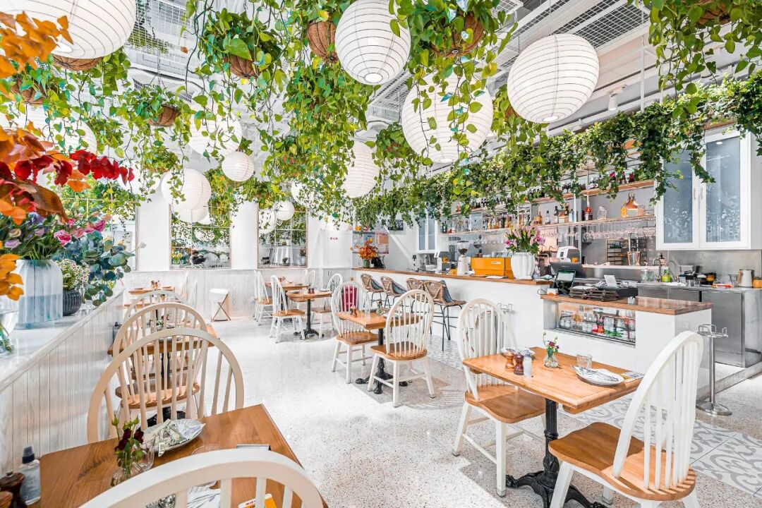 如今做All Day Brunch的店不算少,但花囡囡在其中绝对算得上亮眼:一屋子的绿植鲜花,大面积落地窗毫不吝啬地吸收阳光,天花板满是郁郁葱葱的绿萝,角落里还有着长了鹿角的秋千……