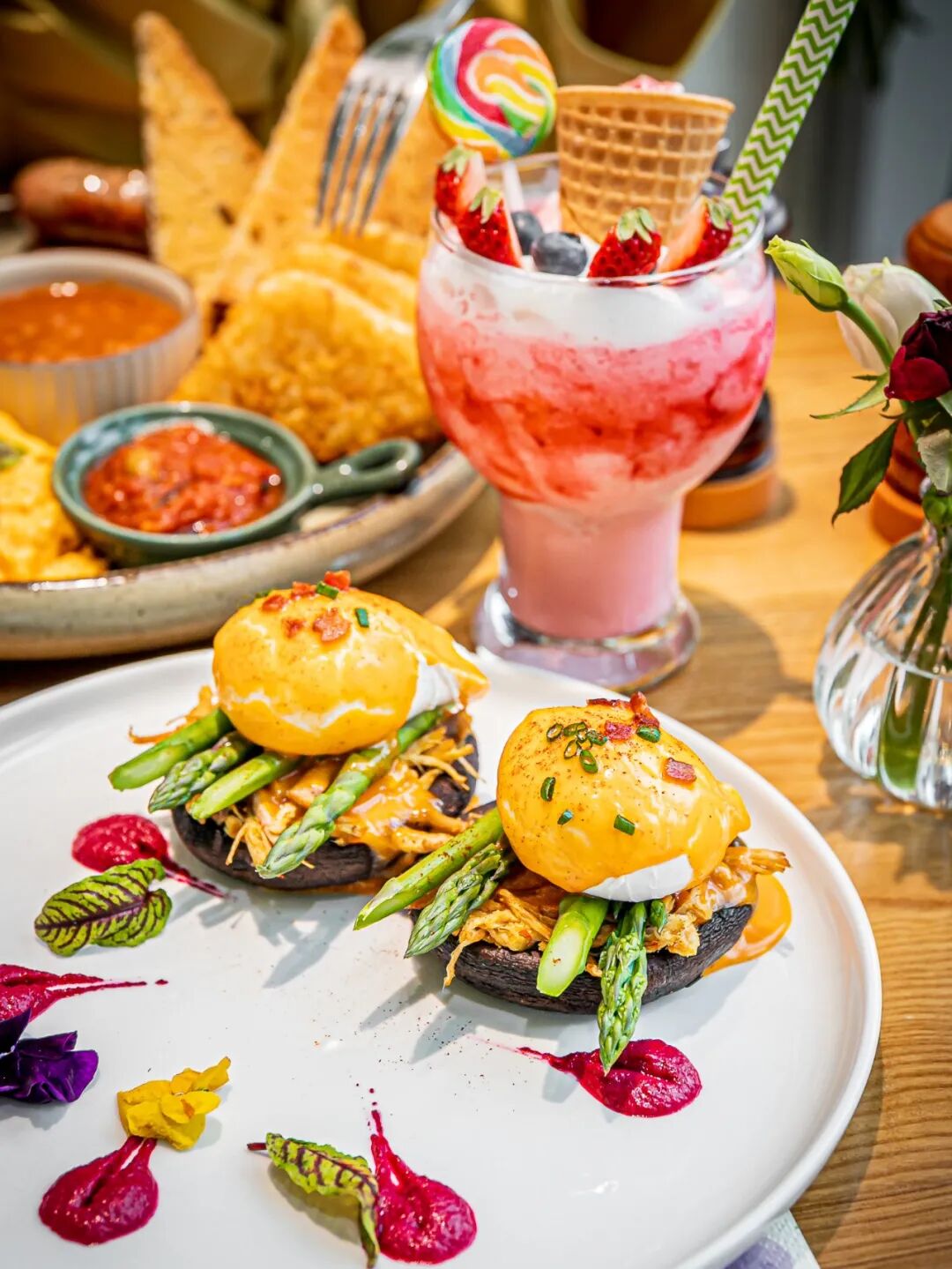 就拿这道手撕猪肉水波蛋来说,以优质兰皇鸡蛋,搭配牛排菇、芦笋和猪肉丝,一次性就能让你尝到鲜嫩、清香和来自腌制酱汁的甜咸口感。