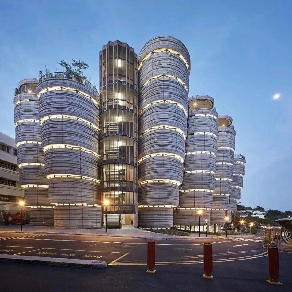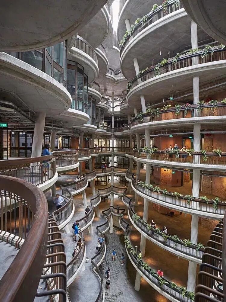 2013年建成的新加坡南洋理工大学学习中心也是Thomas的一大经典。他以母体孕育为灵感,设计了十二座逐渐向底部收拢的塔楼,外墙分布着1050件混凝土板,内部形成56个没有拐角、没有明确前后之分的教室。学生们亲切地称这栋楼为:小笼包、蒸笼……