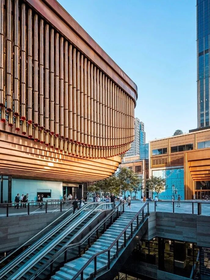 这栋独特建筑由675根可移动金属幕帘组成,幕帘都是用黄铜手工打造而成,长度各不相同,里外共三层。每天定点随着三条轨道同时朝着不同方向转动,还会发出吱呀吱呀的声音,就像是一位舞者在伴随着音乐翩翩起舞。