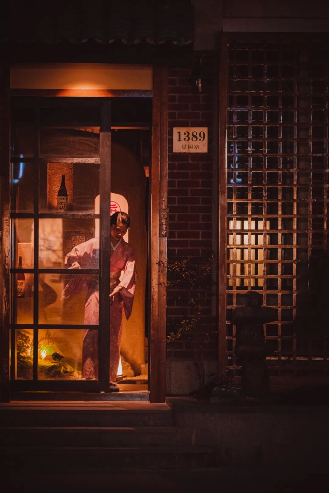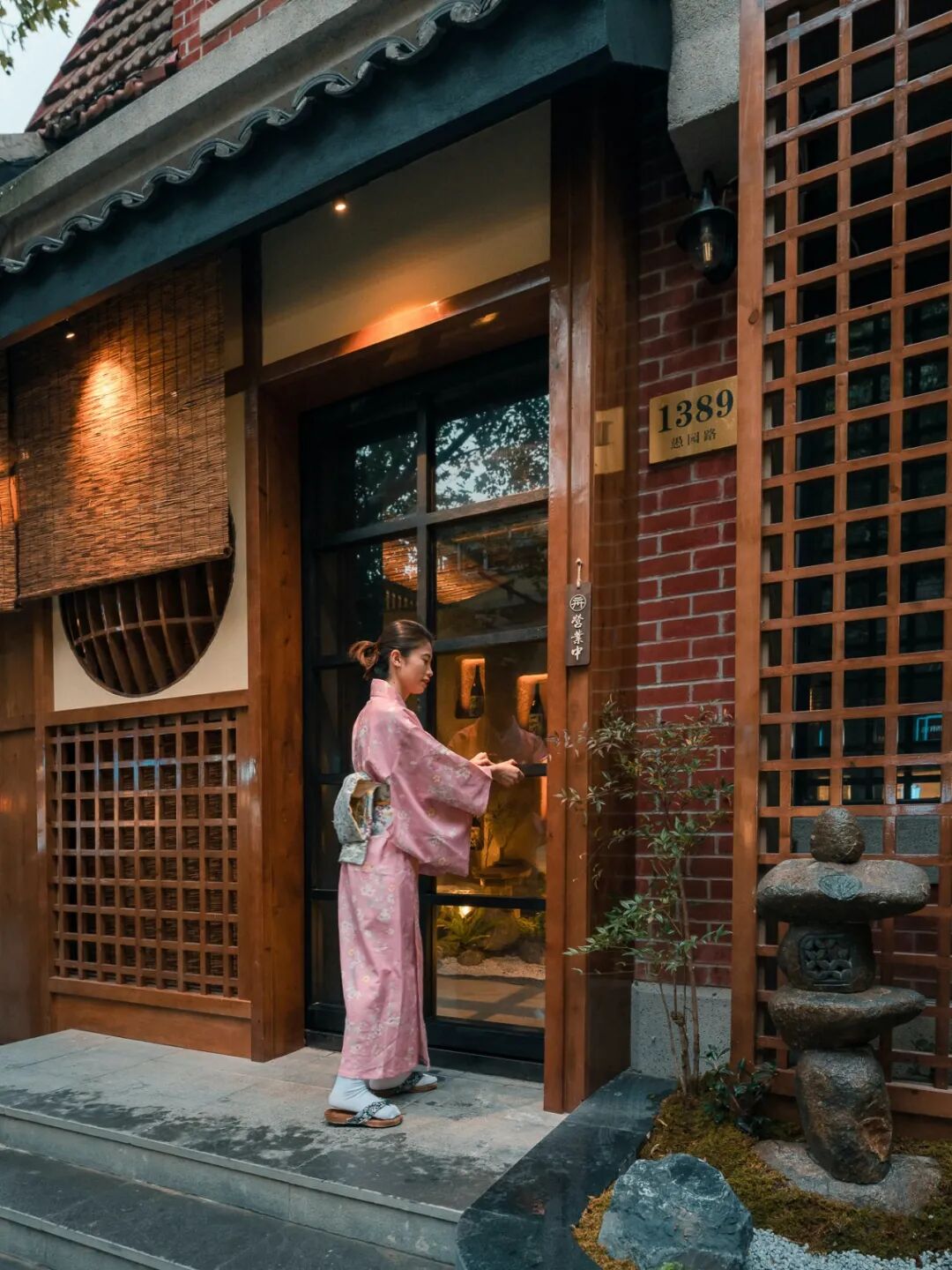 红壳格子、虫笼窗、竹帘......还原京都祗园老店的风格,一亮相就是愚园路上的亮眼风景线。