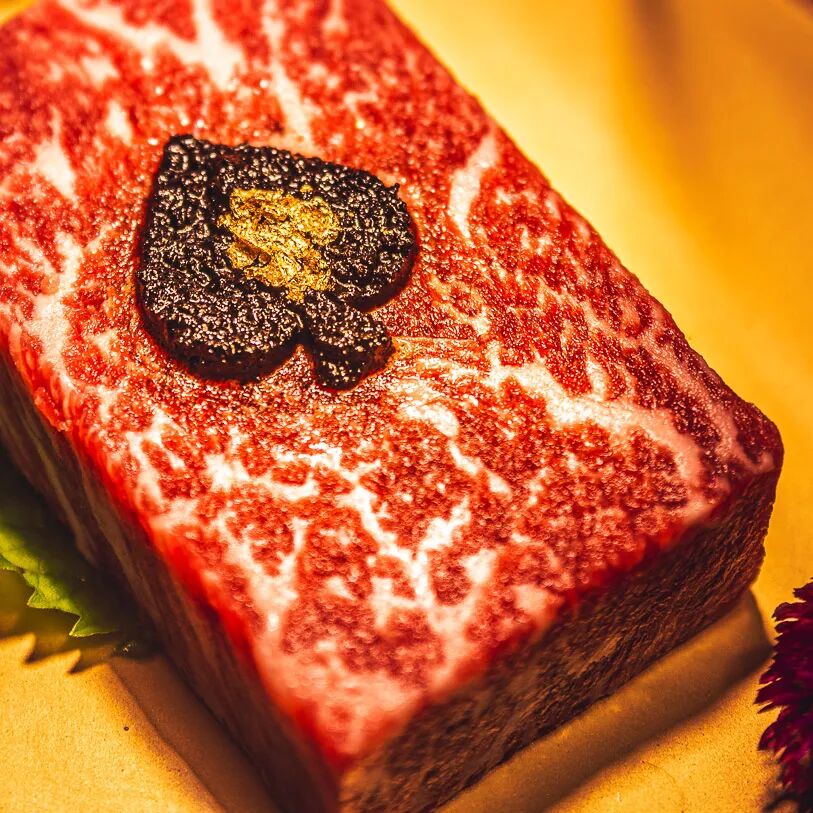 三川特制黑松露扑克和牛,用黑桃A扑克创意致敬三川本店极上骰子牛肉。