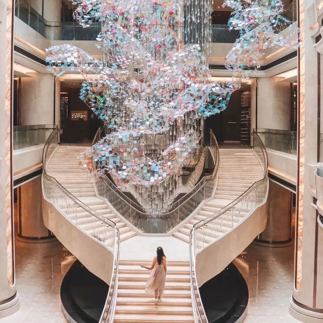 摩珀斯是澳门酒店里实打实的顶流网红。她是全球首座采用自由形态外骨骼结构的摩天大楼,作为赌王儿子何猷龙砸下65亿打造的巨作,中间8字镂空的超时空感,就像走进了未来世界!